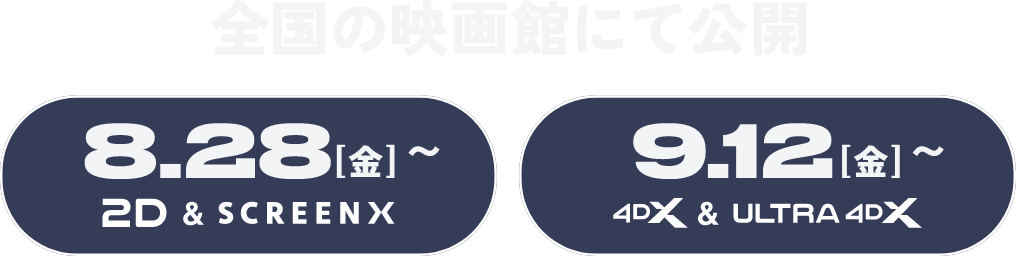 - ※ SCREENX、4DX、ULTRA 4DX上映をご鑑賞の際には、別途追加料金が必要です。
